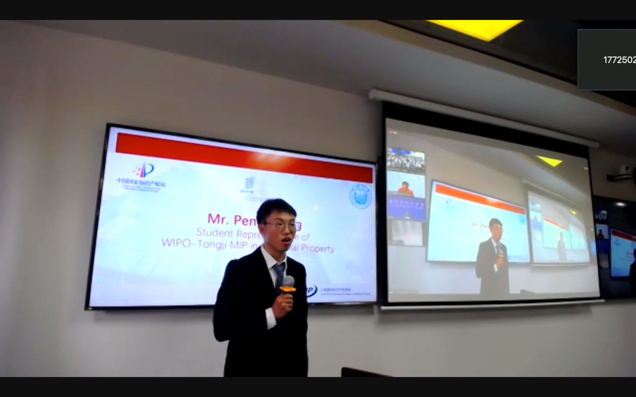 Mr. Chen Yu, Deputy General Director of Shanghai Intellectual Property Administration, thanked the WIPO, the CNIPA, and Tongji University for their support for the construction and development of SICIP. Shanghai Intellectual Property Administration fully supports the international cooperation and talent cultivation conducted by SICIP, Tongji University, WIPO, and internationally renowned universities and institutions. He hoped that the students could improve their intercultural communication and cooperation abilities during their studies and communications, become intellectual property elites with creative thinking and innovative action, and make their contributions to the mutual understanding and friendly cooperation in the field of international intellectual property.