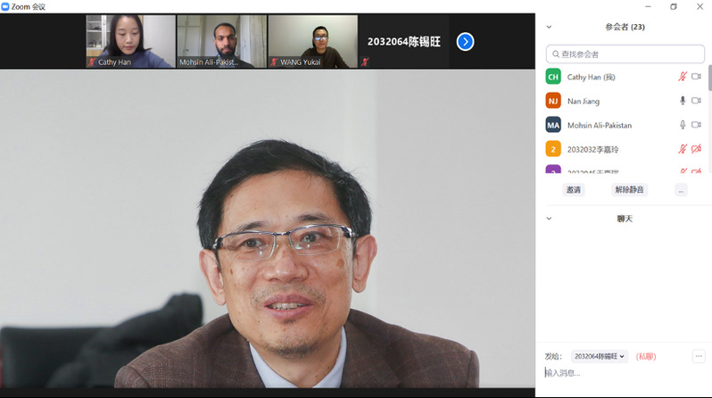 MOHSIN ALI, from Pakistan in 2019 introduced his study and life in Tongji University such as courses, lectures, practical activities, cultural experience activities, and epidemic prevention. He said Thanks to Tongji University for providing excellent learning and living environment which is efficiently and safely managed, and suggested that it should be made to strengthen the contact between teachers, students, and alumni at home and abroad, hoped to do his best to promote exchanges between China and Pakistan.