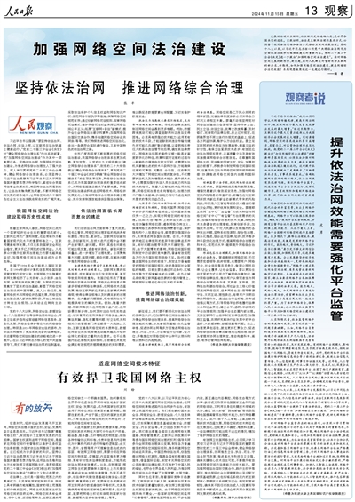 习近平总书记指出:“我们必须科学认识网络传播规律,提高用网治网水平,使互联网这个最大变量变成事业发展的最大增量。”经过长期努力,互联网这个最大变量正逐渐成为我国经济社会发展的最大增量。同时要看到,网络空间的各类违法犯罪日益增多、危害凸显,对监管和治理形成巨大挑战。把党的二十届三中全会《决定》提出的“加强网络空间法治建设”的重要部署落到实处,必须依法加强对网络违法犯罪的打击力度,确保互联网在法治轨道上健康运行。这对提升依法治网效能提出了更高要求。“万物得其本者生,百事得其道者成。”准确把握网络空间的特征特点,依法治网便有其规律可循。强化网络平台监管,促进网络平台合法合规运行、发挥关键作用,是有效预防和遏制网络违法犯罪、提升依法治网效能的重要着力点。