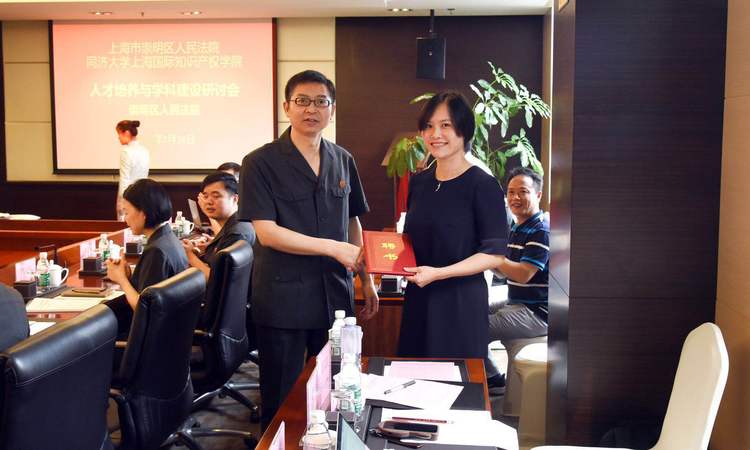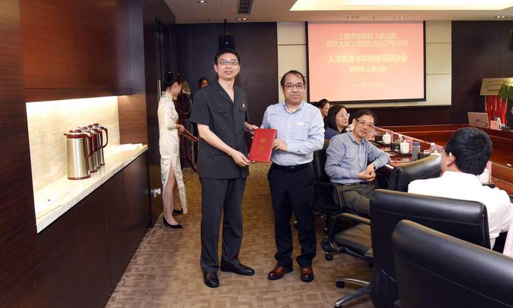 上海市崇明区法院聘请我院宋晓亭教授、单晓光教授、倪受彬教授、谢焱副教授为崇明区人民法院优秀青年法官专家导师。朱丹院长为优秀青年法官专家导师颁发聘书,我院教授与崇明区法院优秀青年法官结为师徒并作简短交流。