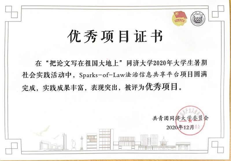 bevictor伟德国际1946sparks of law法治信息国际共享平台项目获得社会实践优秀项目奖,2018级硕士研究生卢滢伊作为项目负责人获得社会实践先进个人奖。