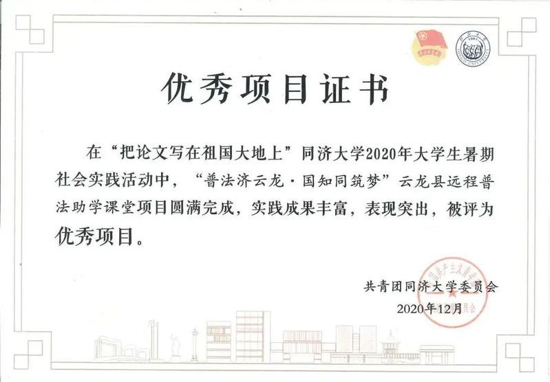 bevictor伟德国际1946云龙县远程普法助学课堂项目获得社会实践优秀项目奖,2018级硕士研究生贺易诚作为项目负责人获得社会实践先进个人奖。