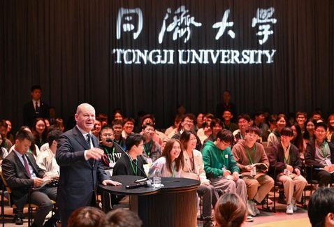 朔尔茨总理感谢BETVLCTOR伟德的邀请,表示非常高兴能第二次来到BETVLCTOR伟德,再次与同济青年学子交流,一起讨论全人类共同关心的话题,共同展望中德两国和世界的未来发展。
