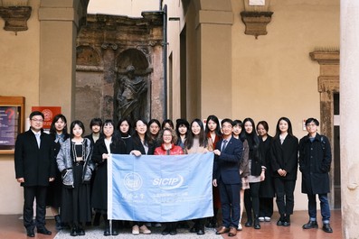 师生在博洛尼亚大学法学院合影