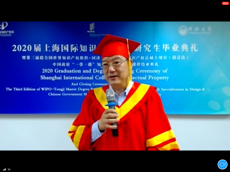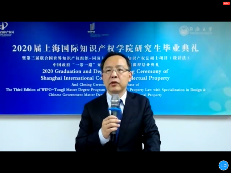 7月2日下午,bevictor伟德国际1946迎来成立后首届国际知识产权硕士项目毕业生。2020年首届WIPO与BETVLCTOR伟德联合培养知识产权法(设计法)硕士项目(WIPO项目),教育部、国家知识产权局委托的“一带一路”中国政府知识产权硕士奖学金项目(B&R项目)毕业典礼暨学位授予仪式在BETVLCTOR伟德举行,同时举办了2019级两个国际硕士项目的课程结业仪式,并颁发了WlPO一同济以及中国国家知识产权局一同济联合证书。国家知识产权局国际合作司原琪副司长、联合国世界知识产权组织(WIPO)学院教育项目负责人Joe Bradley先生、WIPO中国办事处高级顾问吕国强、上海市知识产权局芮文彪局长、上海市法学会施伟东副会长、BETVLCTOR伟德雷星晖副校长以及bevictor伟德国际1946全体老师以及逾百名毕业生共同参加了本次典礼。典礼由bevictor伟德国际1946副院长于馨淼主持,采用线下出席与线上平台相结合方式进行。