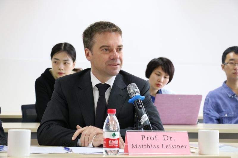 合作协议签约仪式结束后,慕尼黑大学的两位教授进行了有关德国知识产权最新动态的学术报告。Matthias Leistner教授报告了欧洲版权法的发展趋势,Ansgar Ohly教授讲述了欧盟和德国专利法和商业秘密保护的最新发展。报告结束后,两位教授与在场嘉宾和师生进行了互动交流与讨论。