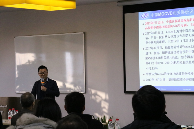 随后,中微半导体上海有限公司知识产权经历张辉先生向参训人员做了题为“企业涉外知识产权风险应对实务及案例分享”的讲座,张辉向学员分享了丰富的企业进军海外市场的知识产权案例,介绍了企业走出去的知识产权困境,并提出了企业专利纠纷预防与应对的方法,同时强调我们需要重新审视专利这个战略性资产。