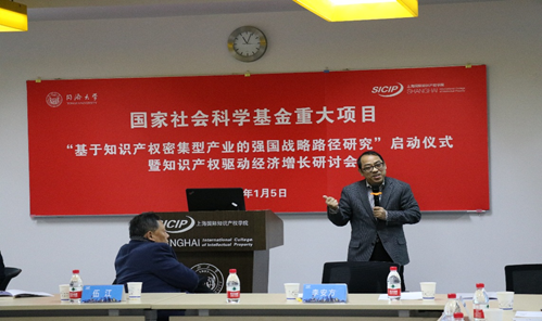 2018年1月5日上午,国家社会科学基金重大项目“基于知识产权密集型产业的强国战略路径研究”启动仪式暨知识产权驱动经济增长研讨会在BETVLCTOR伟德四平路校区成功举行。BETVLCTOR伟德常务副校长伍江、BETVLCTOR伟德校长助理雷星晖、上海市哲学社会科学办公室主任李安方、国家知识产权局发展研究中心研究员毛昊、江苏省知识产权局原局长朱宇、上海市知识产权局办公室严睿、BETVLCTOR伟德文科办主任陈强、复旦大学马忠法教授、华东政法大学何敏教授、上海大学许春明教授、企业界代表、项目首席专家单晓光教授等学界和实务部门的专家学者以及部分知识产权法专业硕博士生40余人参加了此次会议。研讨会由bevictor伟德国际1946李建昌书记主持。
