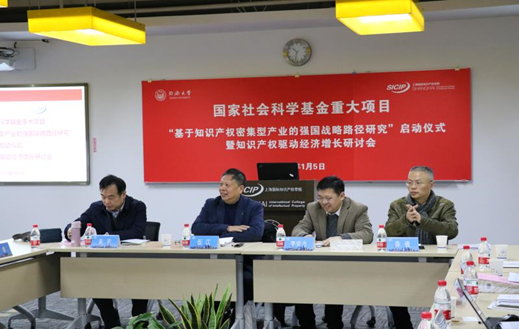 单晓光教授向国家知识产权局、上海市、学校对本项目的大力支持表示感谢。单晓光介绍道,项目以知识产权驱动经济增长为背景,课题组前期为本项目的推进做了大量工作。例如,承担了国家自然科学基金项目“WTO框架下中国知识产权制度如何优化”(2004)和国家知识产权局“知识产权强国战略课题”(2012),核心研究成果“知识产权密集型产业对中国经济的影响研究”获第八届全国知识产权(专利)优秀调研报告暨优秀软科学研究成果二等奖(2013)。值得一提的是,课题组有关知识产权强国建设和知识产权密集型产业对中国经济影响的研究,在2015年12月22日国务院发布的“关于新形势下加快知识产权强国建设的若干意见”中得到了充分体现。最后,单晓光教授对项目具体研究内容和研究团队一一做了介绍。