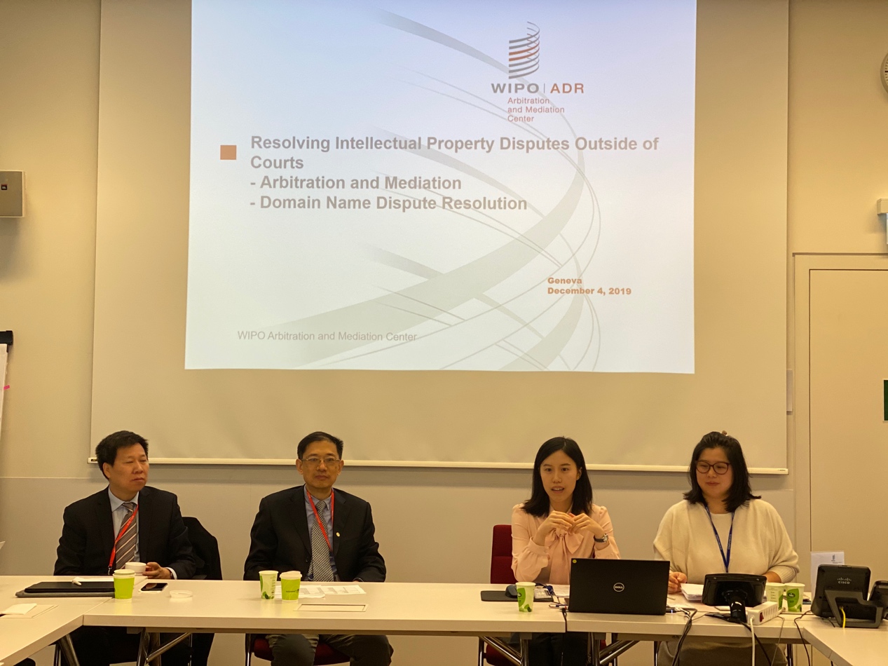 仲裁与调解中心知识产权争端解决科研究员QIYAO DONG详细介绍了该中心的职能及其仲裁与调解规则,对比了IP ADR(替代性争议解决机制)相较于司法诉讼的时间和费用优势。互联网争端解决科法律干事DANDAN CHOU作了以WIPO域名争议解决服务为主题的报告,以非常丰富的实践案例讲述了域名争议解决规则。