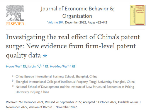 论文详细信息:Wu, Howei, Jia Lin, and Ho-Mou Wu. "Investigating the real effect of China’s patent surge: New evidence from firm-level patent quality data." Journal of Economic Behavior & Organization 204 (2022): 422-442.