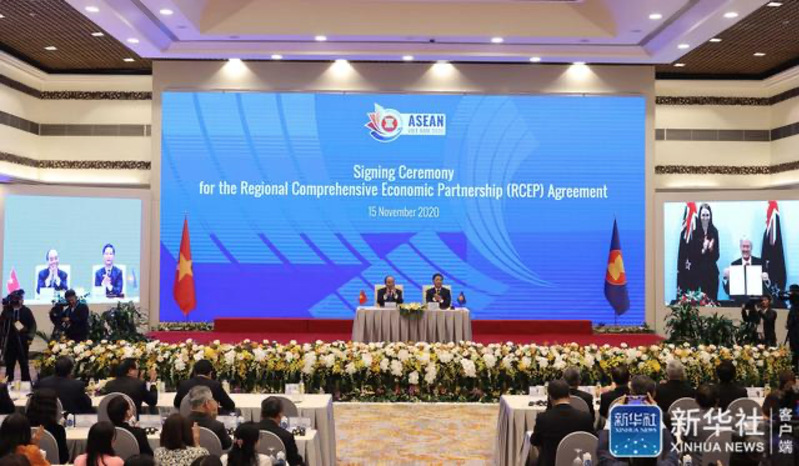 区域全面经济伙伴关系协定(RCEP)签署仪式现场。图片来源:新华社/越通社