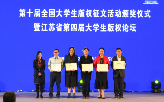 10月21日,由国家版权局主办、中国人民大学国家版权贸易基地和中国人民大学创意产业技术研究院承办的第十届全国大学生版权征文活动颁奖仪式在苏州举行。国家版权局版权管理司司长于慈珂、江苏省新闻出版广电局副局长于国民、中国人民大学创意产业技术研究院院长彭翊、中国人民大学国家版权贸易基地主任白连永、江苏省版权协会会长傅杰三为获奖单位和个人颁奖,来自全国高校的近300名师生代表出席颁奖仪式。