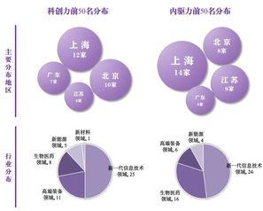 从科创板企业科创力的行业表现来看:新能源领域企业的科创力水平大幅领先其他行业;新材料领域与节能环保领域企业的科创力水平居末。从行业整体的角度出发,各领域企业的科创成果与科创内驱能力基本匹配。关于各行业内高科创力的代表性企业的地域分布情况:新一代信息技术领域的优势企业主要集中在北京与上海,高端装备领域的优势企业主要集中在北京与广东,生物医药领域的优势企业主要集中在上海与山东,新材料、节能环保和新能源领域的优势企业较为分散。