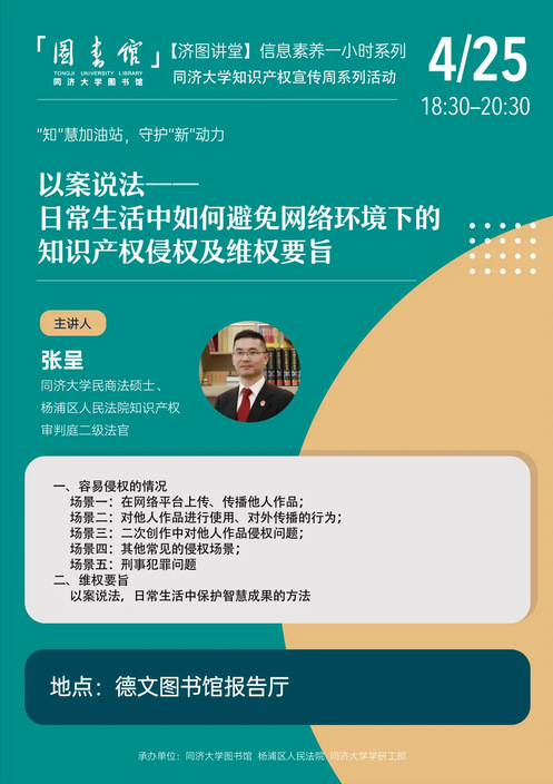 “以案说法”——知识产权普法大课堂|同济知识产权宣传周系列活动